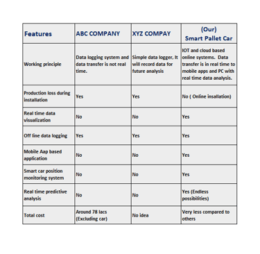 Smart Pallet car is a IOT based temperature monitoring device embedded with android application to monitor the temperature of Pallet car at different zone continuously to study Indurating furnace performance .